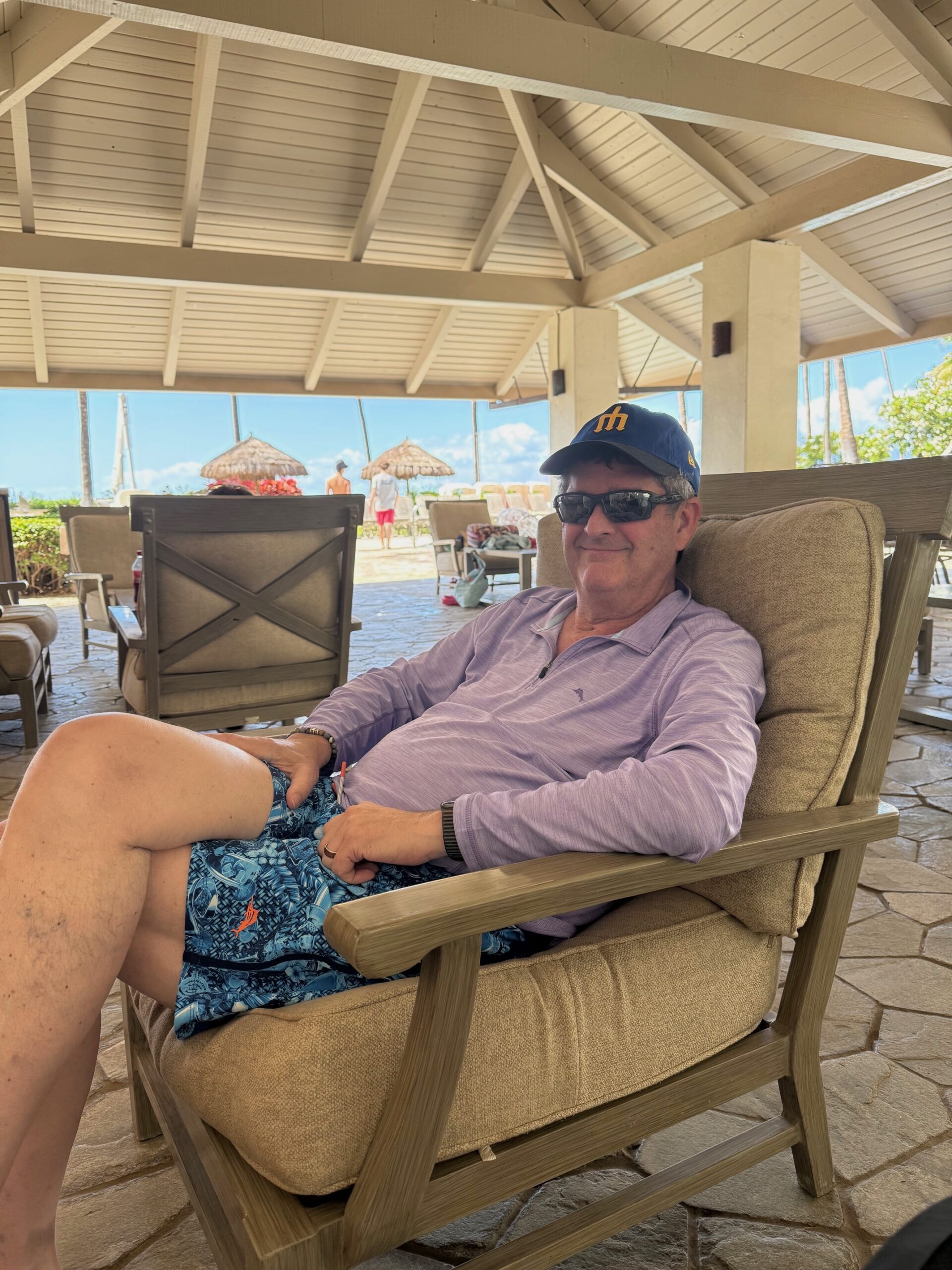 Now they’re saying that they want your husband to be on steroids for a few more days before he flies, and he might as well be at the condo as at the hospital, so in shock again, you bring him home. And in some ways that is when the real stress begins because suddenly all you can see are the many hard surfaces—tile floors and concrete pool decks—that someone who’s unsteady on their feet could fall on. But your dear friend is there to help you and between the two of you, you can keep eyes on him.